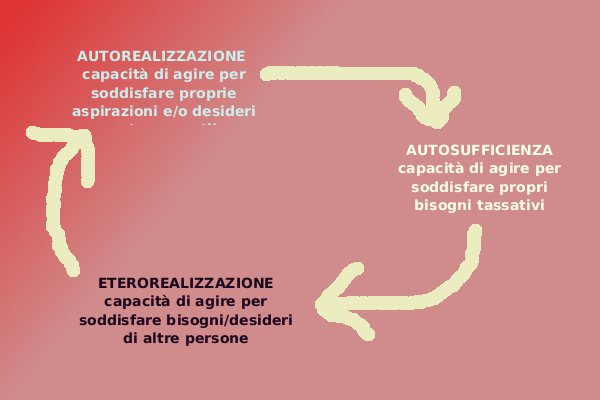 Il benessere di ogni persona si basa sulla possibilità che un suo deficit di competenza possa essere compensato da surplus di autonomia di qualche altra persona o di molte altre in interdipendenza.